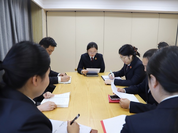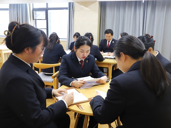 活动伊始,在院图书阅览室,各部门干警代表就学习二十届四中全会精神分享心得体会。
