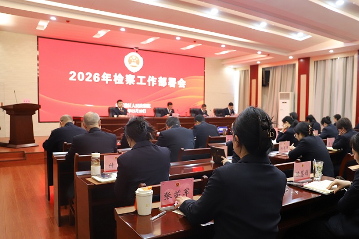 会议深入传达学习全市检察长会议精神及相关文件要求,全面总结本院年度工作成效,系统谋划部署 2026 年各项重点任务。院领导班子成员、全体干警及雇员参加会议,党组副书记、副检察长卫俊主持会议。